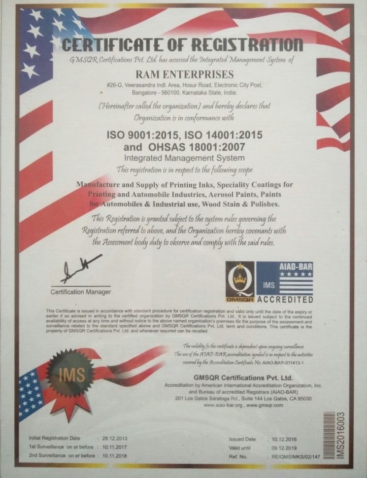 Ram Enterprises started as a manufacturer of gravure and flexo printing inks catering to the precision needs of the printing and packaging industry for more than 30 years. Ram Enterprises diversified as a contract manufacturer since 2006 and is now one of the reputed names in South India for products under surface care, air care and personal care products required in aerosol and non-aerosol packaging. With manufacturing units strategically located in Bengaluru and Pune, we can cater your needs for greater Pan India coverage while reducing transport costs.